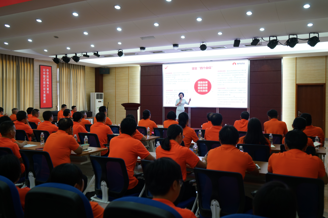 GA黄金甲药业集团党委书记、董事长刘景萍同志通过视频连线海口、杭州、南宁、来宾、江西等地的方式,向大家讲授主题党课。刘景萍书记从为什么要深刻领悟“两个确立”的决定性意义、增强“四个意识”、坚定“四个自信”、做到“两个维护”,充分认识海南自由贸易港建设的重大意义、做海南自由贸易港的建设者,将GA黄金甲药业集团二次创业和高质量发展与中国式现代化有机结合三个方面进行了全面系统的阐释和深入浅出的解读。党课主题鲜明、逻辑清晰、贴近实际,既有理论高度,又有实践深度,具有实践性和现实性意义。
