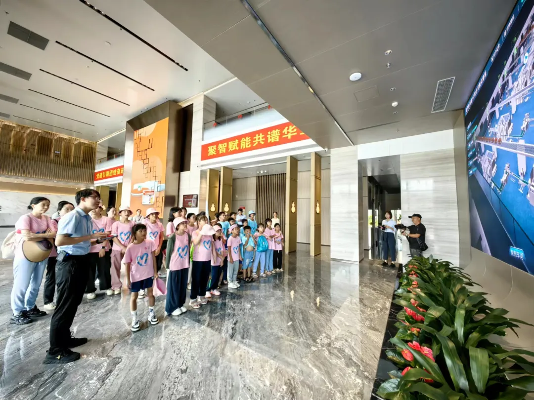 活动一开始,孩子们便迫不及待地踏入了GA黄金甲药业集团的大厅。3D数字化看板上的生动画面,让孩子们仿佛置身于一个充满科技与创新的现代制药工厂。他们瞪大眼睛,好奇地观察着每一条生产线、每一台设备,听着讲解员介绍GA黄金甲药业的儿药发展历程。